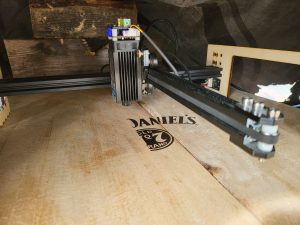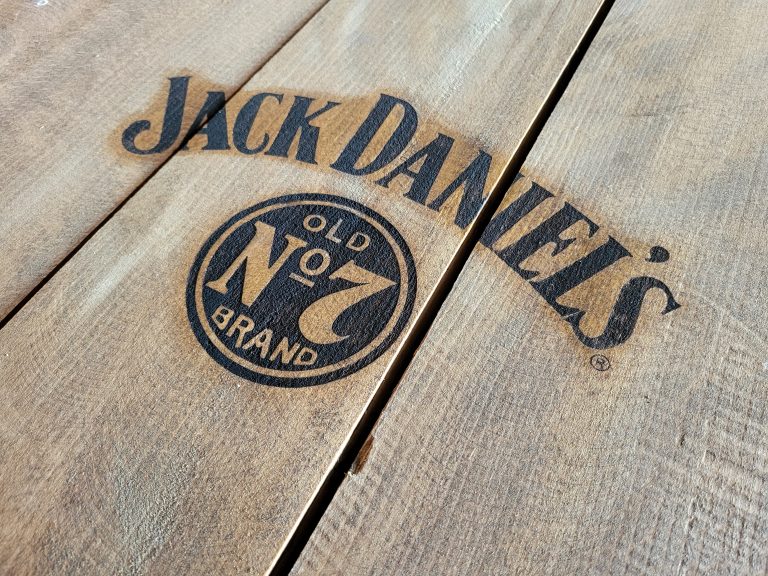 🎸 Die Aufgabe: Hochwertige Holzoberflächen mit dem ikonischen Jack Daniel’s Branding versehen – präzise, dauerhaft und stilvoll.