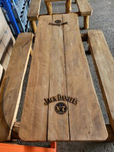 Vor dem legendären RockHarz Festival 2023 war ich mit meinem mobilen Gravurgerät live vor Ort. Für den VIP-Bereich, gesponsert von Jack Daniel’s, durfte ich ein ganz besonderes Projekt umsetzen: individuell gebrandete Tische mit charakterstarker Gravur.