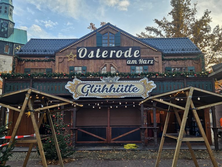 Auf den Bildern sehen Sie ein sechs Meter langes Schild aus Vollholzbrettern, das für den Osteroder Weihnachtsmarkt gefertigt wurde. Die aufgeschraubten, ausgeschnittenen Buchstaben aus Pappelsperrholz verleihen dem Schild eine besondere Tiefe. Das Finish mit Flammen und Ölen bringt die natürliche Schönheit des Holzes zur Geltung und sorgt für eine warme, einladende Atmosphäre.
